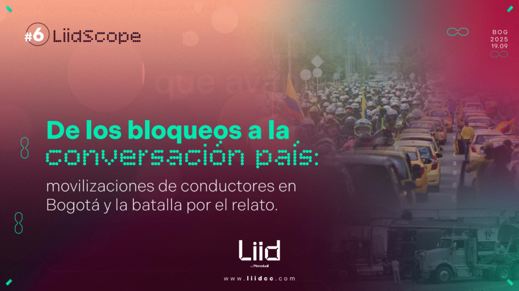 Cuando una protesta local se convierte en tema país: en Liid Scope 6 analizamos cómo la movilización de gremios de conductores en Bogotá pasó de los bloqueos en calle a un debate nacional sobre gobernanza y convivencia. El análisis reveló más de 1.200 menciones, con picos de conversación impulsados por […]